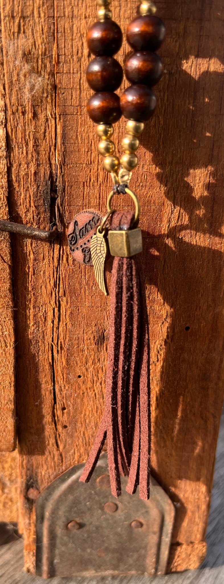 Chapelet artisanal inspiré de la tradition bouddhiste, réalisé avec des perles en bois naturel et agrémenté de pierres de Turquoise. Un bijou spirituel et élégant.