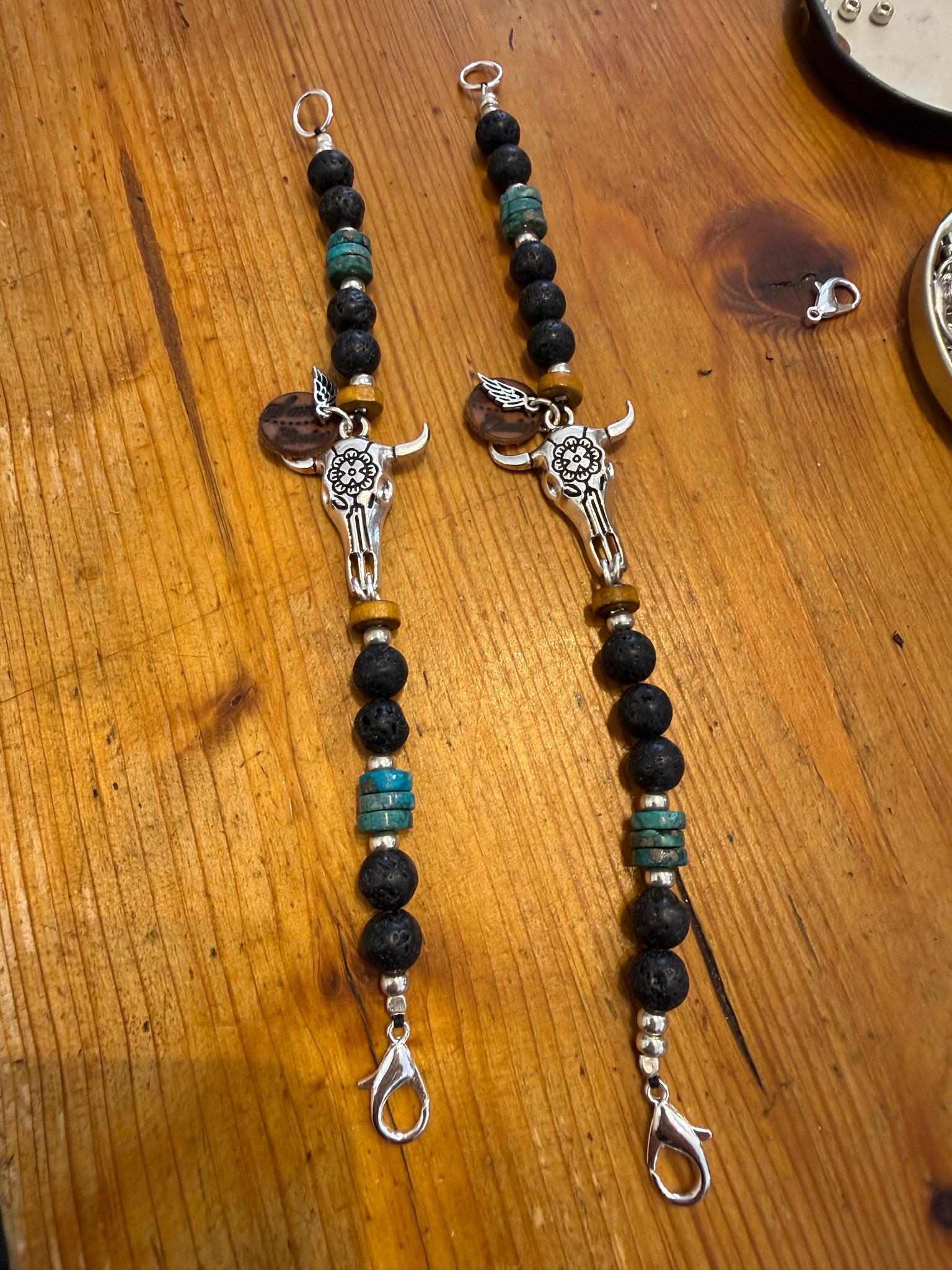 Bracelet artisanal mixte alliant la force de la pierre de lave noire et les propriétés de la turquoise naturelle. Chaque perle de 10mm est soigneusement sélectionnée pour créer une pièce unique aux inspirations ethniques et bohèmes.