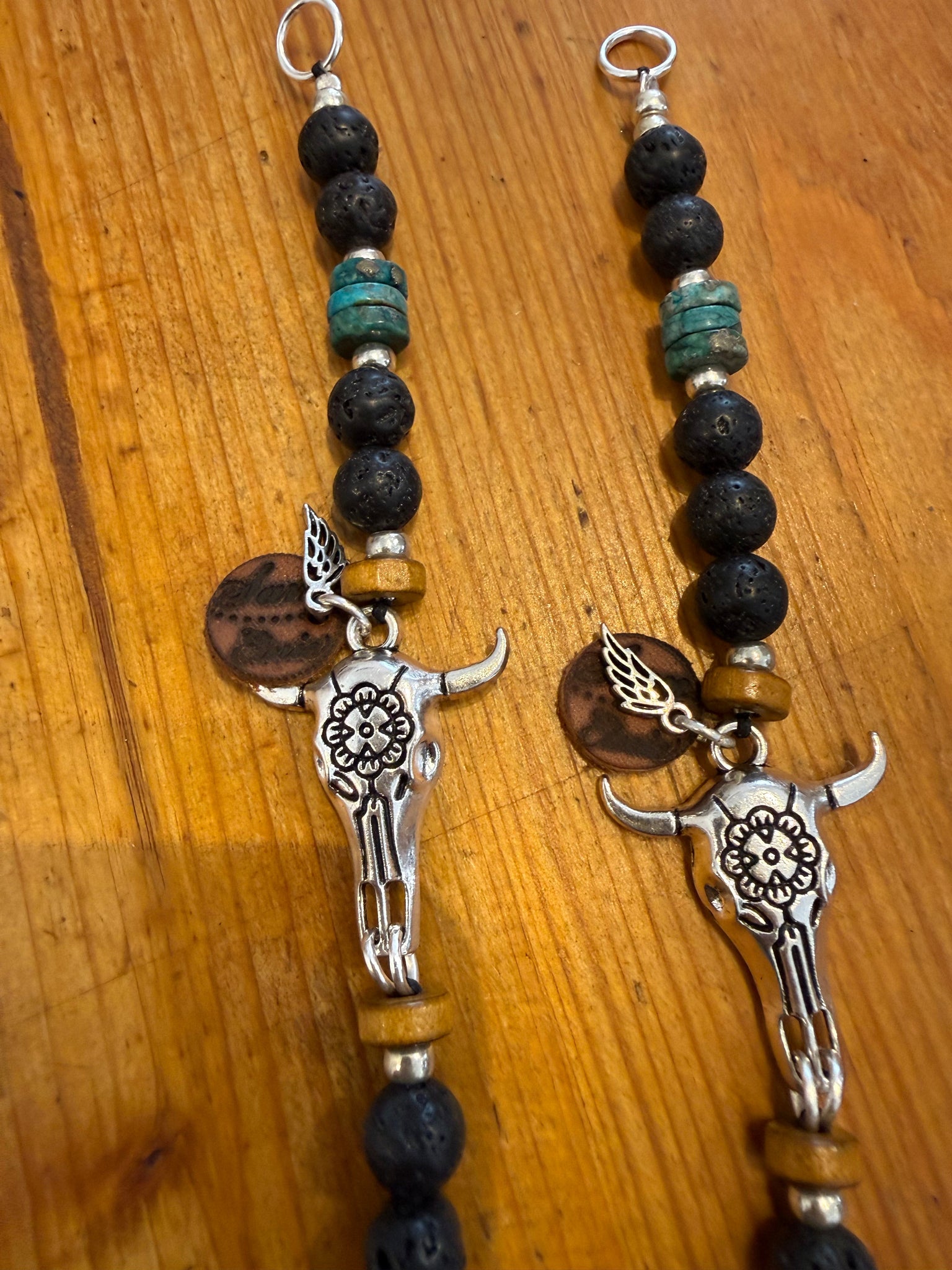- Pendentif tête de buffle ornementale avec motifs ethniques